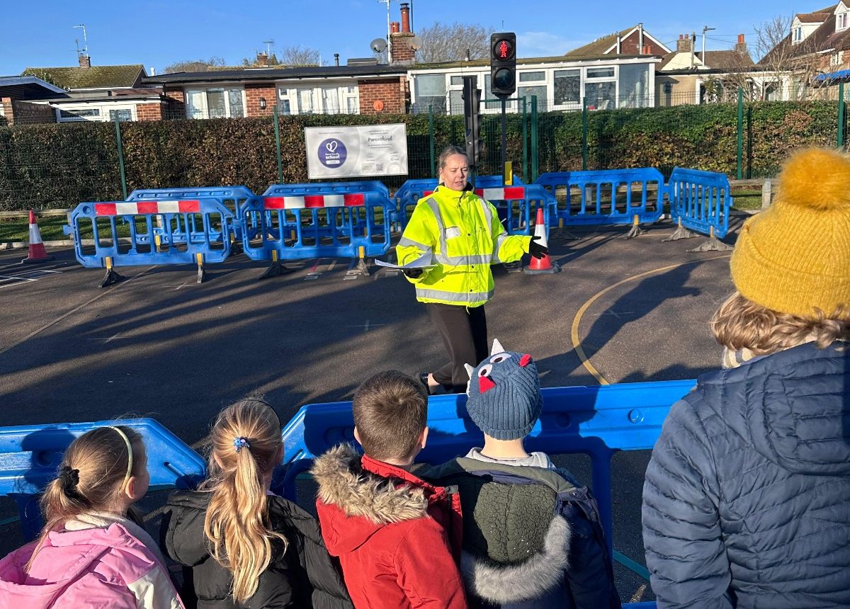 Emma and Liam, ran a road safety workshop with the children in Years 1 and 2. They set up a pedestrian crossing on the playground and talked to the children about how to cross the road safely. The children had the opportunity to practise crossing the ‘road’, waiting for the green man. The children were a credit to Parkwood school an enjoyed the activities whilst learning the importance of road safety.